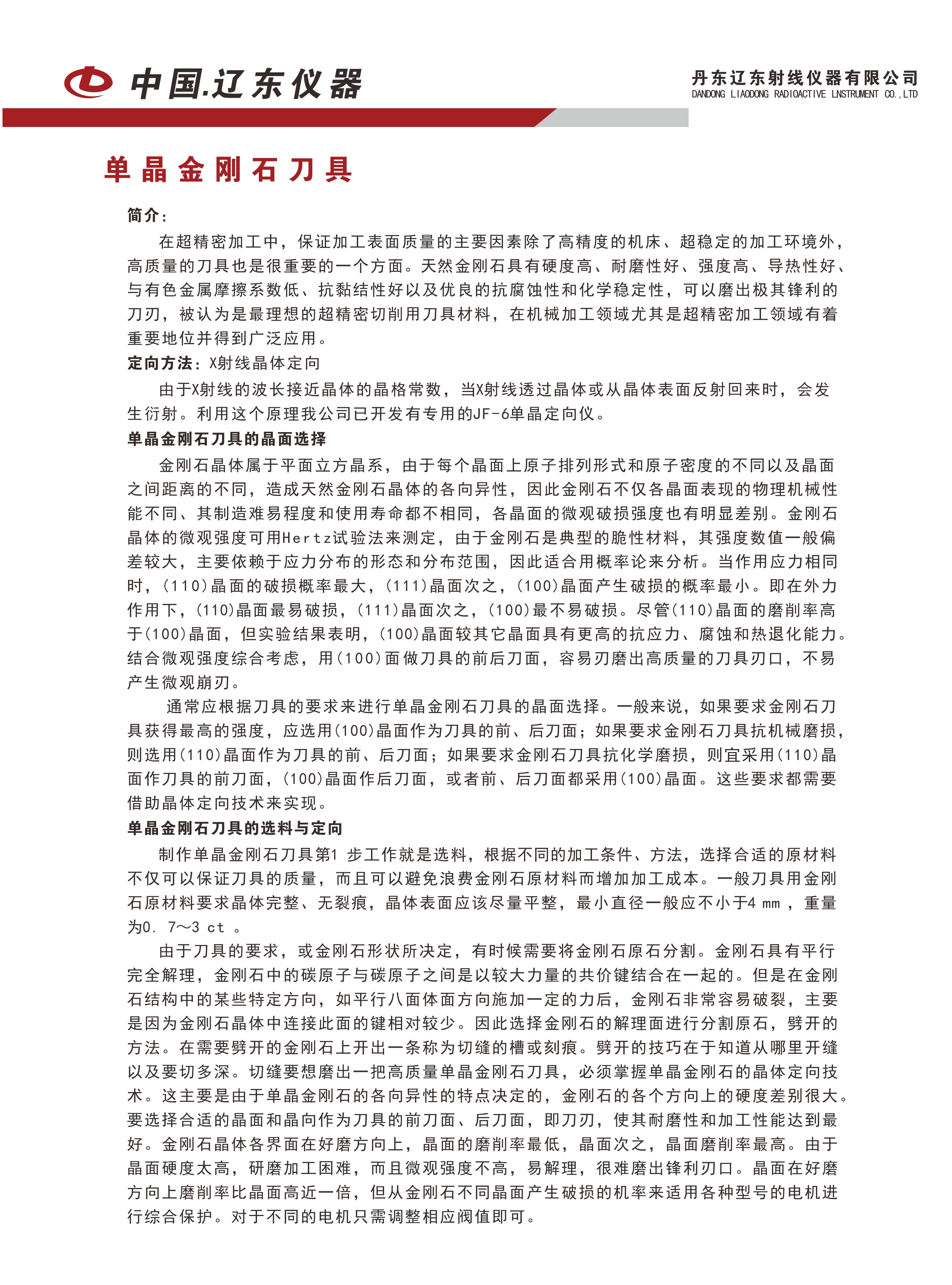 由于X射線的波長接近晶體的晶格常數,當X射線透過晶體或從晶體表面反射回來時,會發生衍射。利用這個原理我公司已開發有專用的JF-6單晶定向儀。